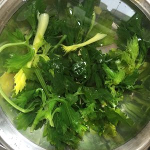芹菜叶切碎和调料混合均匀即可,喜欢辣的可以加入红米椒