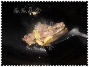 热油锅,爆香蒜头,放下排骨煎两面金黄: