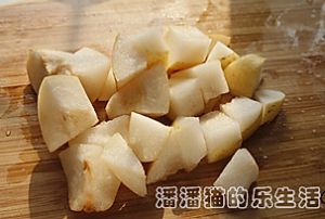 把马蹄洗干净后去皮备用,梨也洗干净。