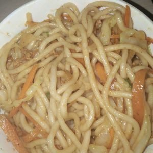 放入肉馅,再依次放入胡萝卜和包菜丝。