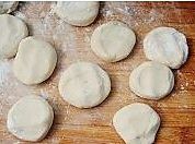 当面团发酵至两倍大时取出,充分揉压出里面的空气。面团搓成长条,再分成小剂子,擀成皮。