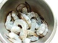 虾处理好后加入料酒、盐腌十分钟,加入蛋清抓均。