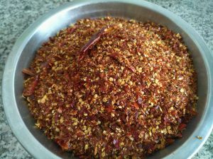 底油放凉后,将打好的辣椒面放入国内,切记依然是凉油入锅小火熬制,直到国内油面熬制红色即可,此时加入适量的盐,鸡精慢慢翻炒均匀便大功告成了