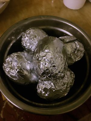 用锡纸包住口 用开水上锅蒸一小时