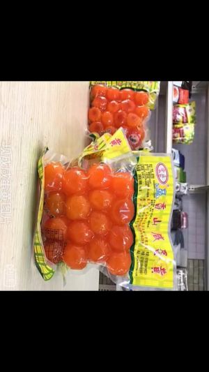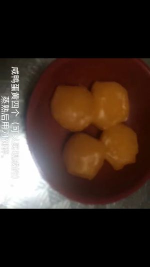 第二步:买图片上的这种蛋黄,取四五个上锅蒸十五分钟左右(熟了就行,我也没计算时间),买不到也可以用咸鸭蛋的黄代替(这个是熟的不用蒸)。