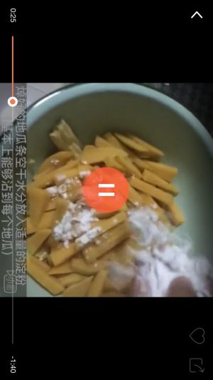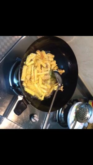 然后把地瓜条放里炸,如果太多就分两次炸,,炸酥脆就好了。