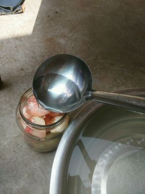 等开了锅再蒸上15分钟左右就可以出锅了,出锅时要戴上防烫手套,先把瓶盖拧紧,倒扣的放,让空气得到更好的封闭!过后再放正就可以了!