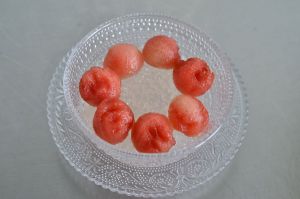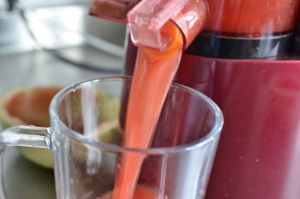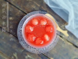 煮西米的空档可以将西瓜榨汁(可以先用挖球器挖几颗球备用做装饰)。