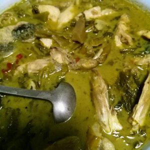 锅烧热,放少许油,把酸菜放入锅里稍炒片刻,加入水,等水烧开放入鱼头和鱼骨先煮会,