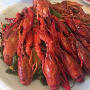 放入小龙虾翻炒,加入料酒、生抽、白糖、盐继续翻炒均匀。