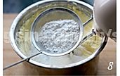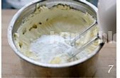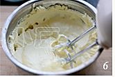 分三次加入打散的鸡蛋液,以低速搅打均匀;