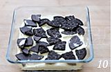 将奥利奥饼干块均匀的码在奶酪糊上面;