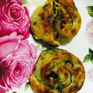 卷起来(这是我做的韭菜鸡蛋饼,一样的卷,我手油就没有拍照了)