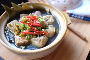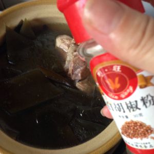 换砂锅,海带汤里加白胡椒粉,加入盐和鸡精调味