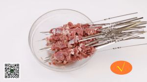 串羊肉串时注意,肥瘦间隔,太瘦烤的时候肉容易干、柴。