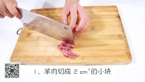 羊肉去除白膜,洗干净擦干水分,切成2立方厘米的小块,放置腌制3小时。