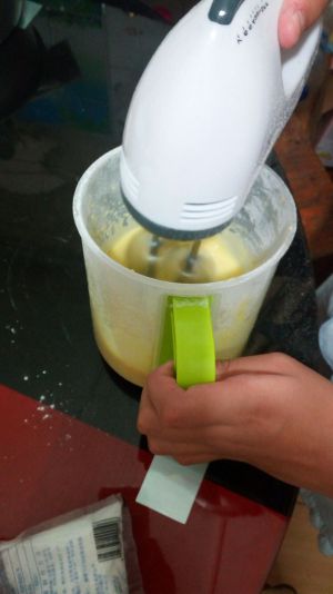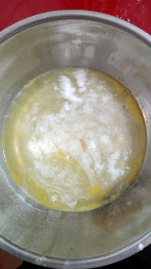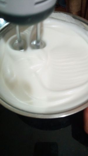 3.蛋白加2克的塔塔粉.30克的白糖分3次倒入蛋白里用电动打蛋机打发.
