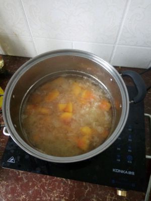 煮开一会儿再加入冰糖(我加了8颗 喜欢甜的可以适量再加点哦)加入冰糖后转中火煮