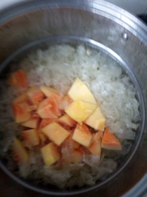 煮开后加入木瓜 继续大火煮(前面也是大火煮)