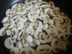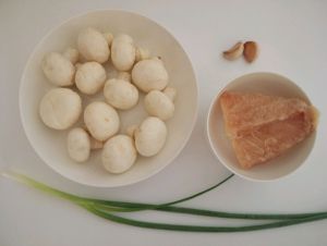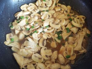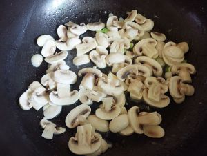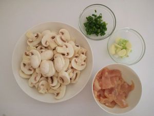 口蘑洗净,切片;鸡胸肉洗净切片,用盐、料酒和淀粉抓匀,腌制10分钟。