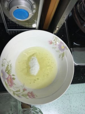 打发蛋清至湿性打发状态,即有大弯钩状,有一定流动性即可。