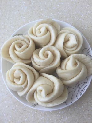把面团揪成大小均匀的剂子,擀成圆形的薄饼,有层次的放在一起,三个为一组,卷成筒状从中间一分为二,玫瑰花的形状就出来了,凉水下锅,蒸制开锅后15-20分钟即可出锅食用。简单方便,最主要自己做的健康,在外面买的都有添加剂。