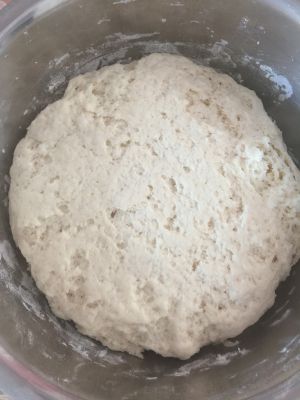 把酵母加入到量好的温水中搅拌均匀,倒入面粉盆中,揉成光滑的面团,(夏天现在的温度40分钟左右就发酵好了。大概就是原有面团的2倍大,),发酵成这样即可。
