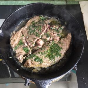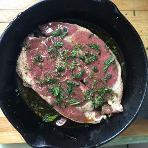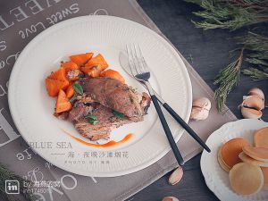 羊扒两面都抹上黑胡椒粉,盐,橄榄油,撒薄荷叶末,用手按摩入味,腌制半小时