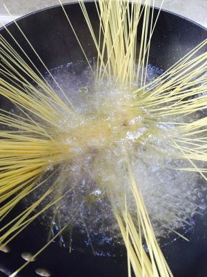 这时候面就可以下锅煮了!!10min然后加点橄榄油和盐才不会粘锅