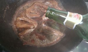 然后放入啤酒小火慢炖30到40分钟 加入香叶和八角