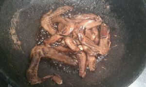 锅内放少许油爆香葱姜蒜后放入鸭翅翻炒