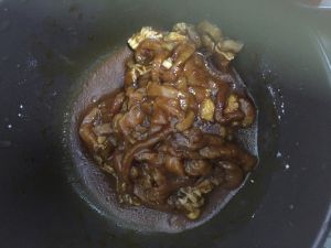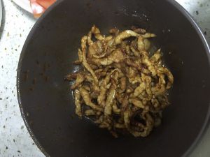 大火收汁后,加入一勺半盐,适量鸡精,盛出备用