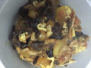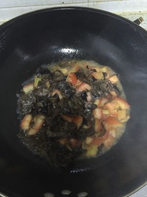 先把西红柿下锅翻炒后加入木耳搅拌,然后加入适量水,焖煮二三分钟后加入鸡蛋肉搅拌