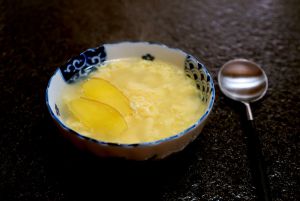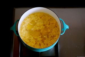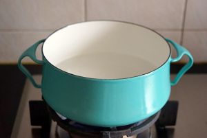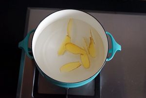 放入切好的姜片,开燃气煮开后,再转小火煮五分钟,这是锅内的水已经开始散发姜片的香气啦