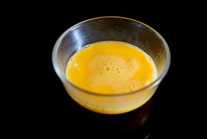 鸡蛋打入碗内,然后充分搅拌均匀至蛋白蛋黄完全融合