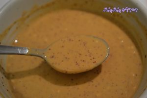 然后就是2种粉混合倒啊,调到摊饼的那种糊,半流动状态吧。