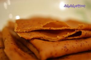 倒点面糊到锅子里,我是用不粘锅,所以没有加油。转动一下锅子,让面糊铺满锅底,薄薄的一层。等一面煎好了再翻面。差不多就可以出锅了。