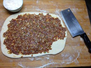 猪肉馅,牛肉馅各一半下入配料和调料调制备用