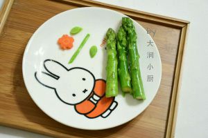 2.红萝卜,芦笋,鸡蛋,只需这3种材料,切好造型焯熟断生即可。