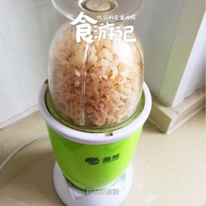 将炒好的虾皮粉放入料理机中磨成粉末状