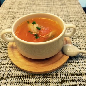 将汤中的生姜取出,把番茄倒入肉汤,再煮沸5分钟!完成了!番茄与肉类烧汤很鲜美哦,不用再放味精等调料。