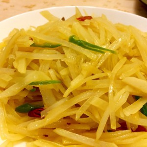 加入土豆丝,酱油,醋翻炒。然后出锅前加入少许盐调味即可。