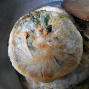 这时面差不多醒好了,开始擀皮像包包子一样只不过得按扁擀一下就上锅烙了。熟了就可以吃了