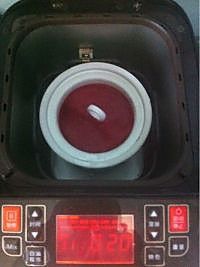 把桶装人面包机里小心倒入水果泥后,按下IMIX键,默认20分钟