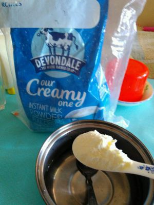 250ml的冷开水里加入30克的德运奶粉(冲浓一点更好吃)
