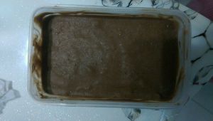 在第二布牛奶煮好后,想吃巧克力味道的,可以倒出一小部分趁热加入黑巧克力豆待融化后迅速冷却,待奶油打发好后加入约四分之一的量,搅拌好后放入冰箱,同样每半小时拿出来搅拌,连续四五次。