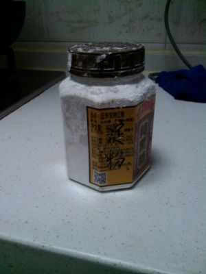 50克粘米粉+5克马蹄粉+120克水搅拌均匀成肠粉粉浆。