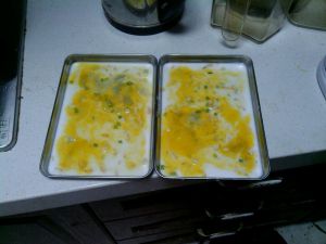 取出蒸盘,用刮刀卷起装碟。我有时间了再换图。