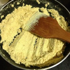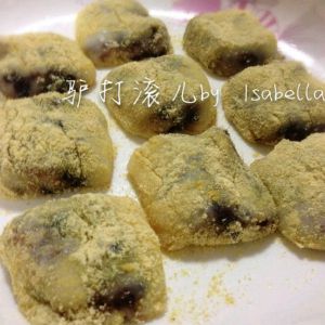 案板上均匀撒上一层黄豆粉,我的粉和案板撞衫了(~o~)Y。