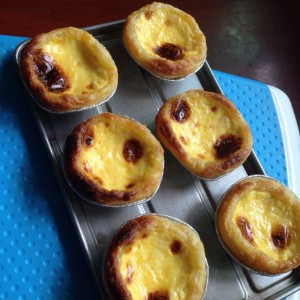 把红豆分别放入蛋挞皮中,挞水分别倒入蛋挞皮中,等烤箱预热好了之后放入烤箱烘烤10分钟左右